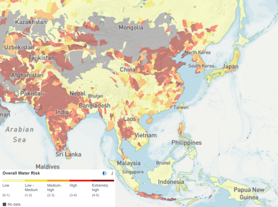 国内外の現場について、世界資源研究所(World Resources Institute)が提供する「Aqueduct Water Risk Atlas」を用いて水ストレスを把握しています。