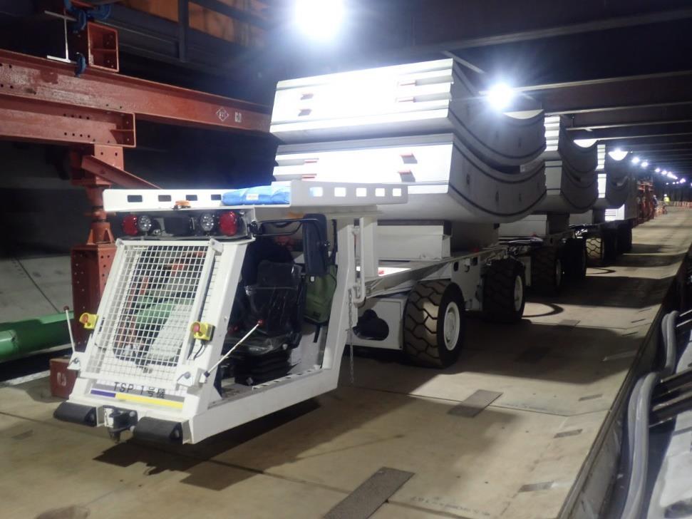 国内初急曲線対応セグメント運搬車の導入 -自動誘導システムや遠隔操作を備えた急曲線対応多目的運搬車-