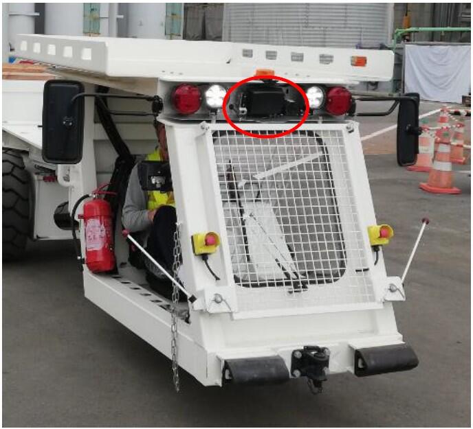 遠隔操作で自動ステアリング走行を行っている時は、運転席上部に装備されたラダーシステムが有効となり、前方に人や障害物があった場合はリモコンの警報音が鳴ります。