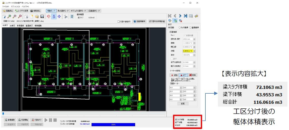 (参考資料2) 躯体図上で任意に工区分けが可能、体積自動計算