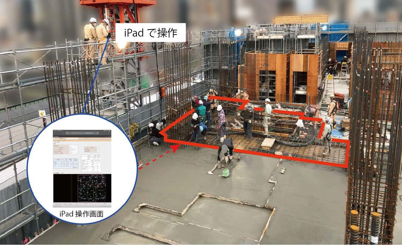 当社と株式会社フォーラムエイト(東京都港区、社長:伊藤 裕二)は、コンクリート打設作業に伴い発生してしまう残コン・戻りコンを削減するために、iPadに表示した施工図面に対し未打設部分の領域を囲み指示することでその領域のコンクリート体積を計算し、最終的に必要なコンクリートの調整量を自動計算するアプリを開発しました。この新たなシステムを活用することで、調整時に必要なコンクリート数量を高い精度で算出できることを現場実証で確認しました。
