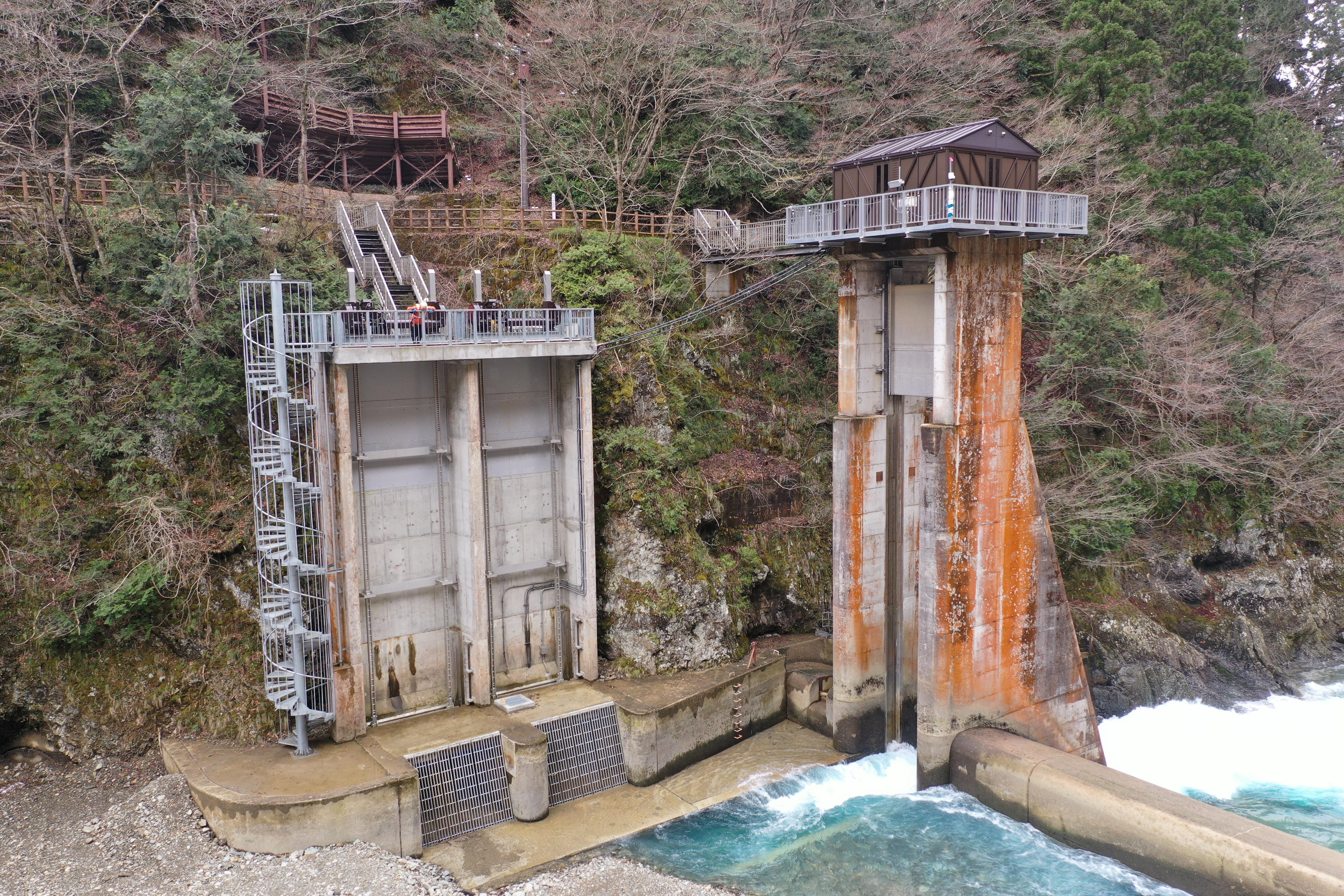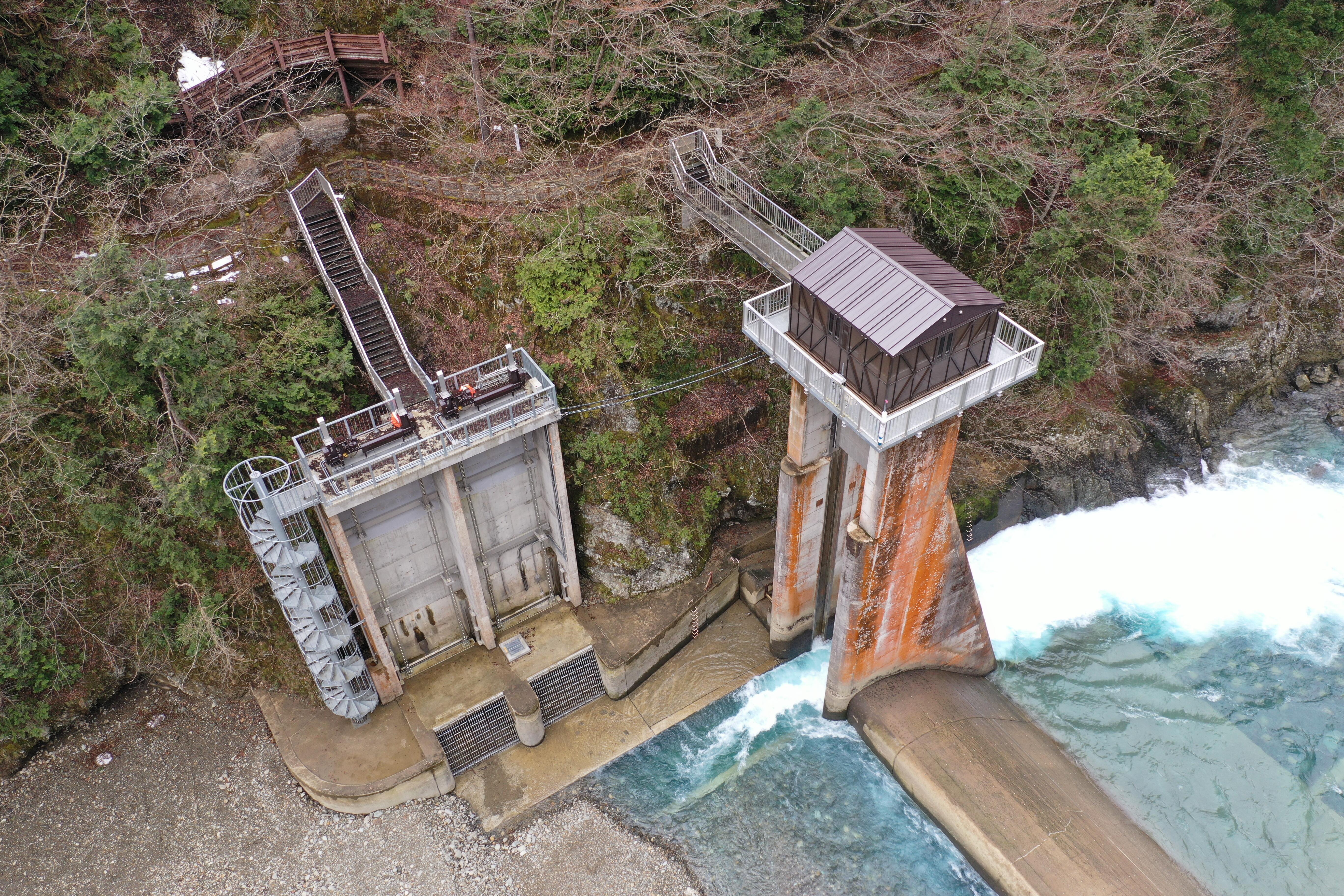 - 抱返頭首工の補修及び耐震補強工事、ゲート設備等の更新工事